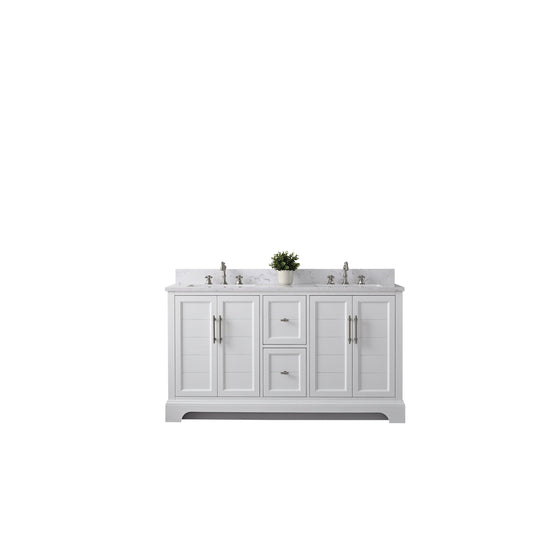 Vanity Art Vannes 60" Double White Freestanding Vanity Set With Engineered Marble Countertop and Integrated Sink