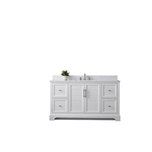 Vanity Art Vannes 60" Single White Freestanding Vanity Set With Engineered Marble Countertop and Integrated Sink