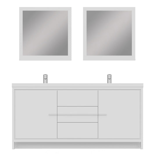 Alya Bath Sortino 72" Double White Modern Freestanding Bathroom Vanity With Acrylic Top and Integrated Sink