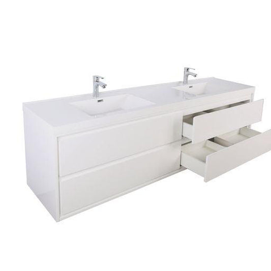 Moreno Bath MAX 72" Gloss White Wall-Mounted Vanity With Double Faucet Holes and Reinforced White Acrylic Sink