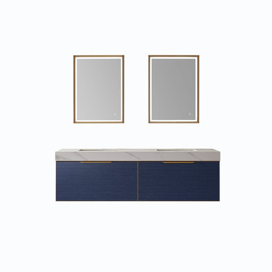Vinnova Alicante 72" Double Vanity In Classic Blue With White Sintered Stone Countertop And Undermount Sink With Mirror