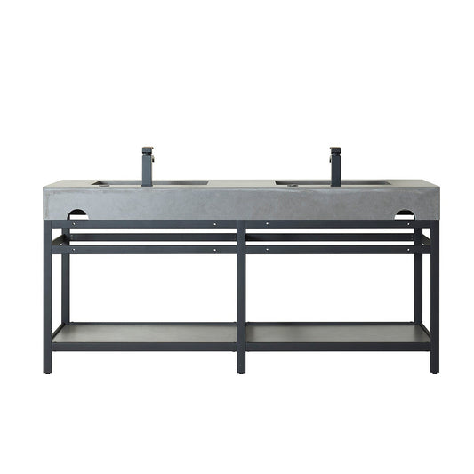 Vinnova Bilbao 72" Double Vanity With Matte Black Stainless Steel Bracket Match With Grey Sintered Stone Countertop Without Mirror