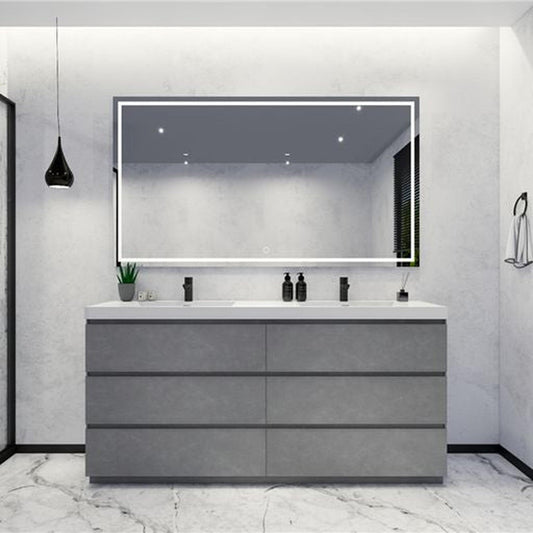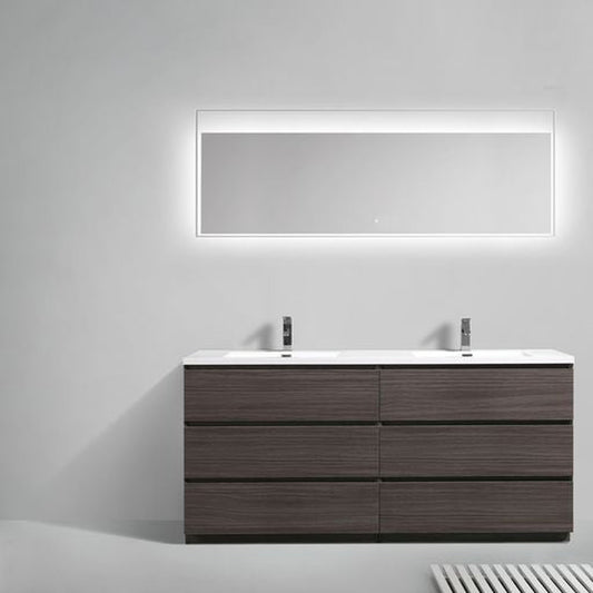 Moreno Bath Angeles 72" High Gloss Gray Freestanding Vanity With Double Reinforced White Acrylic Sinks