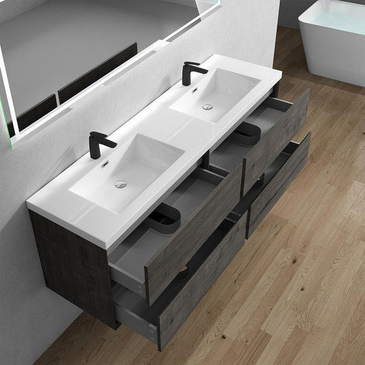 Moreno Bath Kingdee 72" Smoke Oak Wall-Mounted Modern Vanity With Double Reinforced White Acrylic Sinks