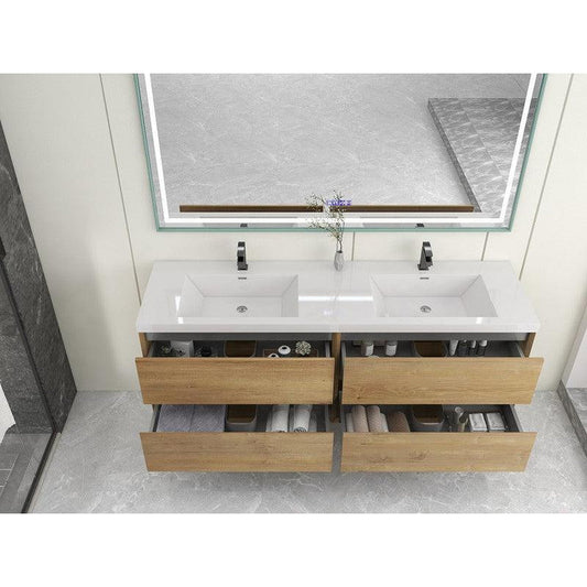 Moreno Bath Kingdee 72" Light Oak Wall-Mounted Modern Vanity With Double Reinforced White Acrylic Sinks