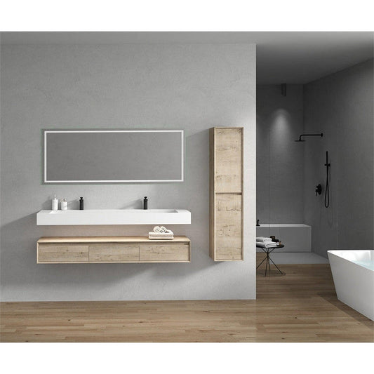 Moreno Bath ALYSA 72" Light Oak Floating Vanity With Double Faucet Holes and Reinforced White Acrylic Sink