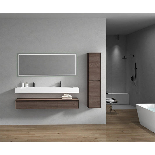 Moreno Bath ALYSA 72" Smoke Oak Floating Vanity With Double Faucet Holes and Reinforced White Acrylic Sink