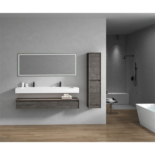 Moreno Bath ELSA 72" High Gloss Gray Wall-Mounted Vanity With Double Reinforced White Acrylic Sinks