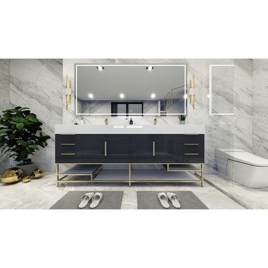 Moreno Bath Bethany 84" High Gloss Gray Freestanding Vanity With Double Reinforced White Acrylic Sinks