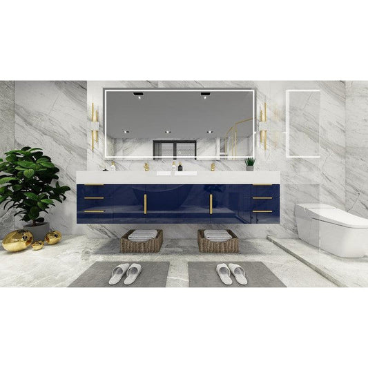 Moreno Bath ELSA 72" High Gloss Night Blue Wall-Mounted Vanity With Double Reinforced White Acrylic Sinks
