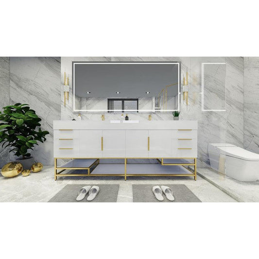 Moreno Bath Bethany 84" High Gloss White Freestanding Vanity With Double Reinforced White Acrylic Sinks