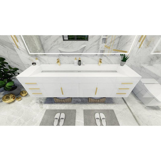 Moreno Bath Bethany 84" High Gloss White Wall-Mounted Vanity With Double Reinforced White Acrylic Sinks