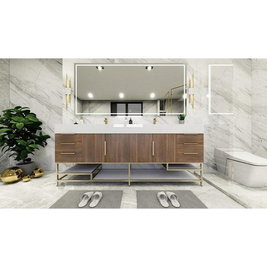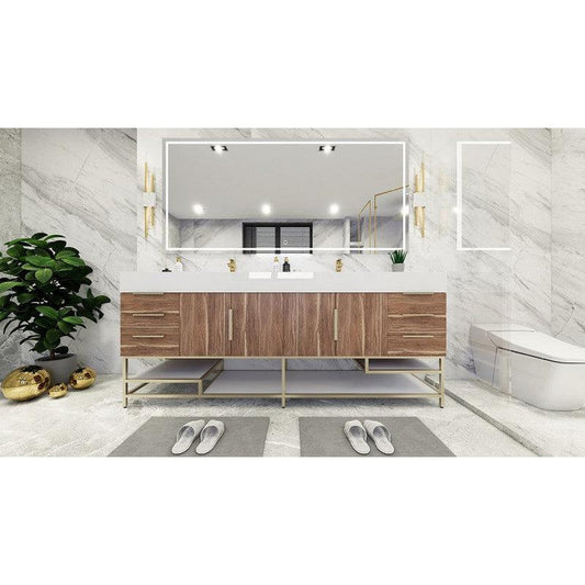 Moreno Bath Bethany 84" Rosewood Freestanding Vanity With Double Reinforced White Acrylic Sinks