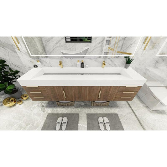 Moreno Bath ALYSA 72" White Oak Floating Vanity With Double Faucet Holes and Reinforced White Acrylic Sink