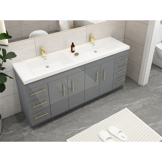 Moreno Bath ELSA 72" High Gloss Gray Freestanding Vanity With Double Reinforced White Acrylic Sinks