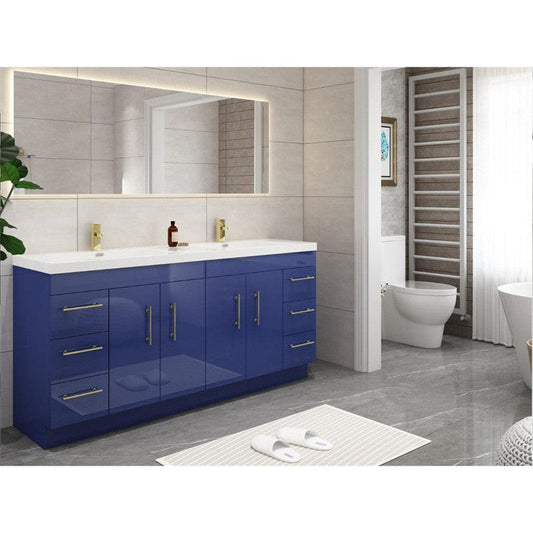 Moreno Bath ELSA 72" High Gloss Night Blue Freestanding Vanity With Double Reinforced White Acrylic Sinks