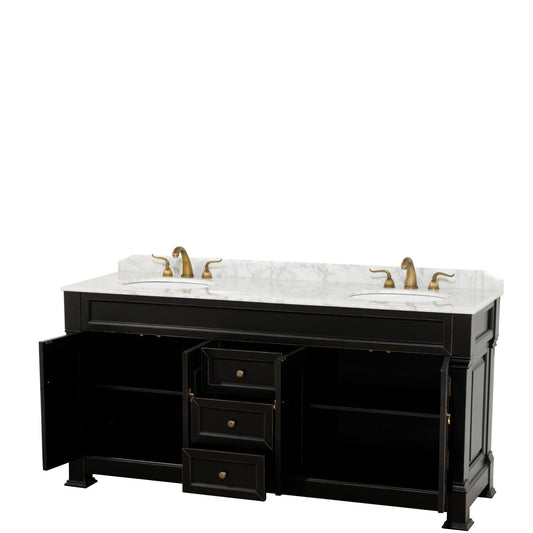 Wyndham Collection Andover 72" Double Bathroom Vanity in Black With White Carrara Marble Countertop & Undermount Oval Sink