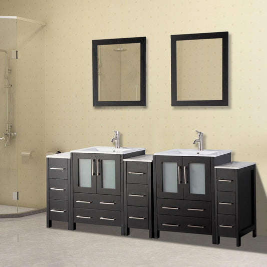 Vanity Art Brescia 84" Double Espresso Freestanding Vanity Set With With Integrated Ceramic Sink, 3 Side Cabinets and 2 Mirrors