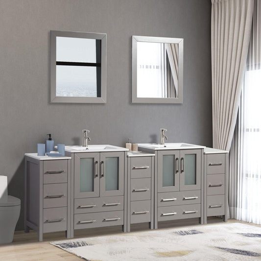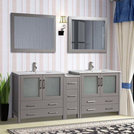 Vanity Art Brescia 84" Double Gray Freestanding Modern Bathroom Vanity Set With Integrated Ceramic Sink, 1 Side Cabinet and 2 Mirrors