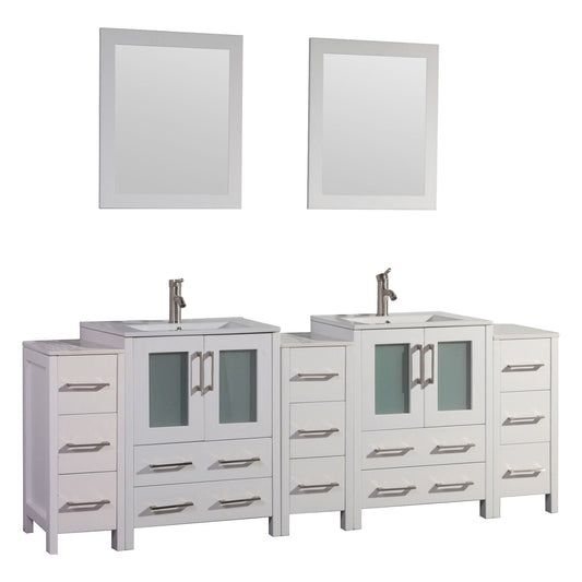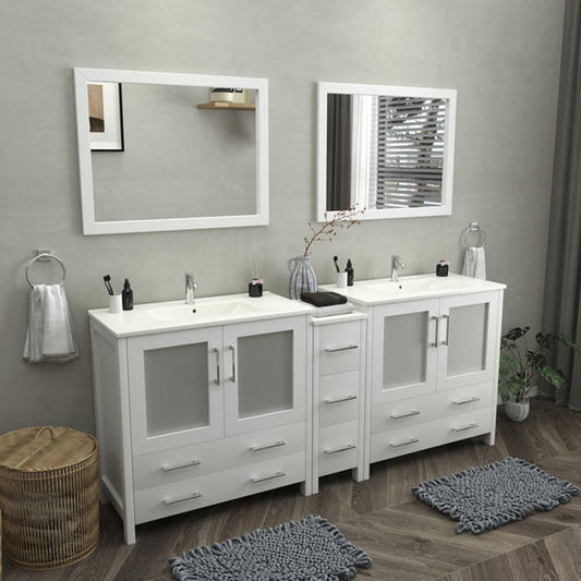 Vanity Art Brescia 84" Double White Freestanding Modern Bathroom Vanity Set With Integrated Ceramic Sink, 1 Side Cabinet and 2 Mirrors