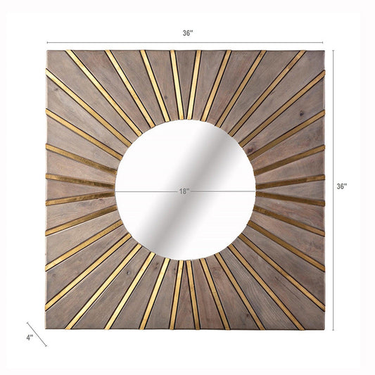 A&B Home Clad 36" x 36" Bundle of 3 Squared Shaped Sunburst Wooden Brass Framed Wall-Mounted Mirror