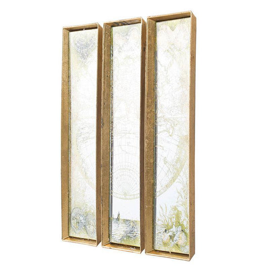 A&B Home 15" x 63" Bundle of 10 Rectangular Polished Antique Gold Frame Wall-Mounted Mirror With Silver Sash Drape
