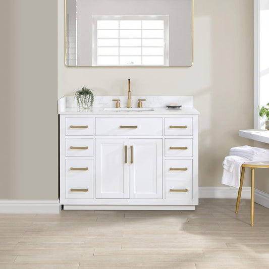 Altair Gavino 48" White Freestanding Single Bathroom Vanity Set With Grain White Composite Stone Top, Single Rectangular Undermount Ceramic Sink, Overflow, Sidesplash, and Backsplash