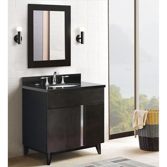 Bellaterra Home Urban 31" 1-Door 2-Drawer Silvery Brown Freestanding Vanity Set With Ceramic Undermount Oval Sink and Black Galaxy Top