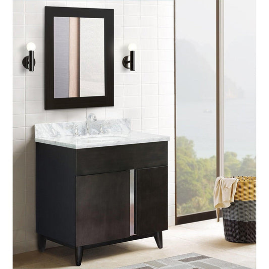 Bellaterra Home Urban 31" 1-Door 2-Drawer Silvery Brown Freestanding Vanity Set With Ceramic Undermount Oval Sink and White Carrara Marble Top
