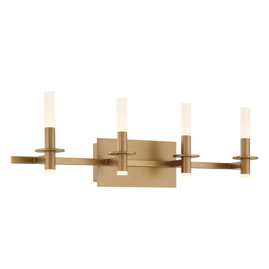 Eurofase Lighting Torna 36" 4-Light Dimmable LED Gold Metal Bath Bar With Frosted Acrylic Shades