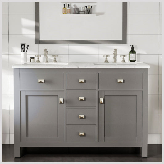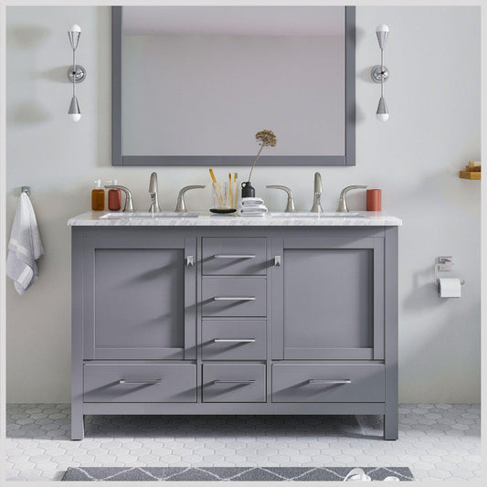 Eviva Totti Artemis 48" x 34" Gray Freestanding Bathroom Vanity With Carrara Style Man-made Stone Countertop and Double Undermount Sink