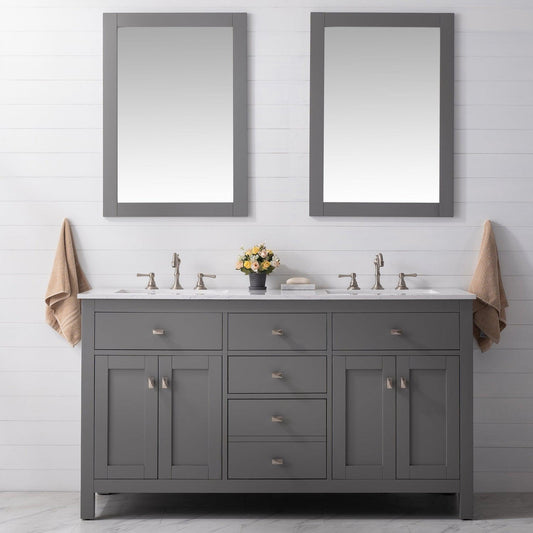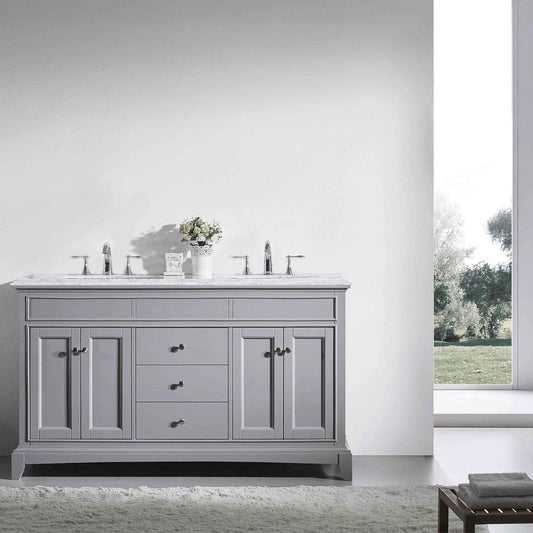 Eviva Elite Stamford 60" x 36" Gray Freestanding Bathroom Vanity With White Carrara Marble Countertop and Double Undermount Porcelain Sink