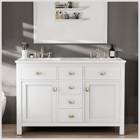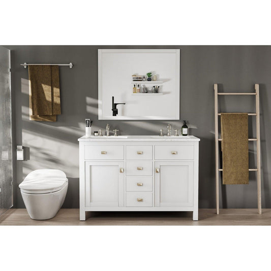 Eviva Totti Artemis 48" x 34" White Freestanding Bathroom Vanity With Carrara Style Man-made Stone Countertop and Double Undermount Sink