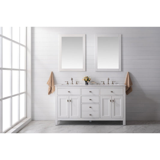 Eviva Totti Artemis 60" x 34" White Freestanding Bathroom Vanity With Carrara Style Man-made Stone Countertop and Double Undermount Sink