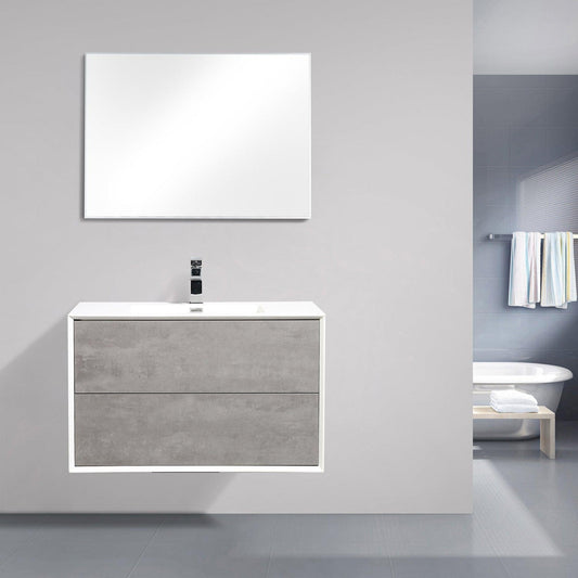 Eviva Vienna 36" x 22" Concrete Gray Wall-Mounted Bathroom Vanity With White Single Integrated Sink