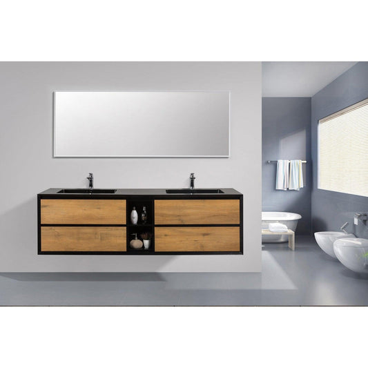 Eviva Vienna 75" x 22" Oak Black Wall-Mounted Bathroom Vanity With White Double Integrated Sink