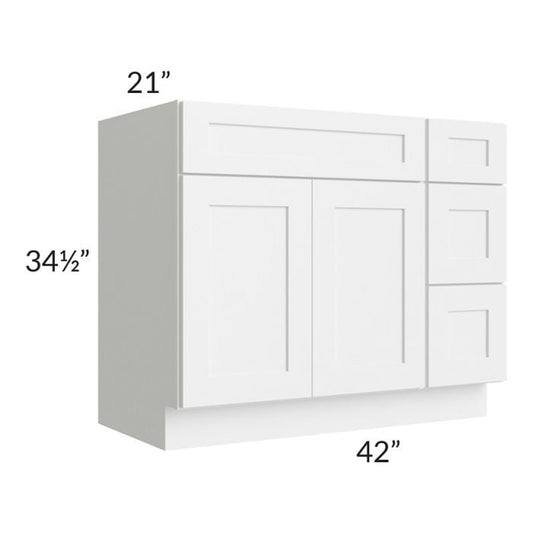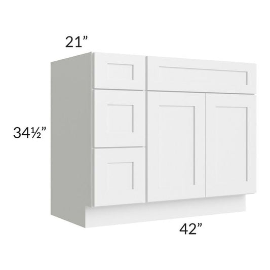 RTA Frosted White Shaker 42" Vanity Sink Base Cabinet (Drawers on Right)