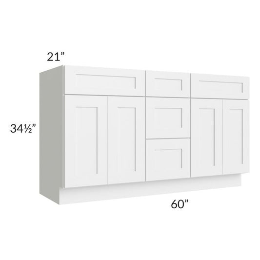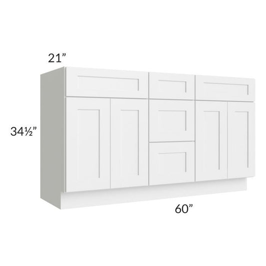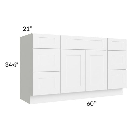 RTA Frosted White Shaker 60" Vanity Sink Base Cabinet with 6 Drawers and 1 Decorative End Panel