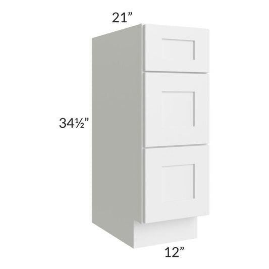 RTA Asheville White Shaker 12" 3-Drawer Vanity Base Cabinet