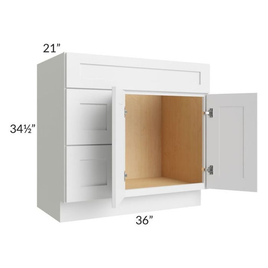 RTA Asheville White Shaker 36" Vanity Sink Base Cabinet (Drawers on Right)