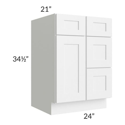 RTA Frosted White Shaker 24" Vanity Sink Base Cabinet (Drawers on Left) with 1 Decorative End Panel