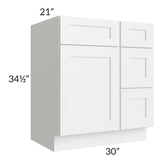RTA Frosted White Shaker 30" Vanity Sink Base Cabinet (Drawers on Right)