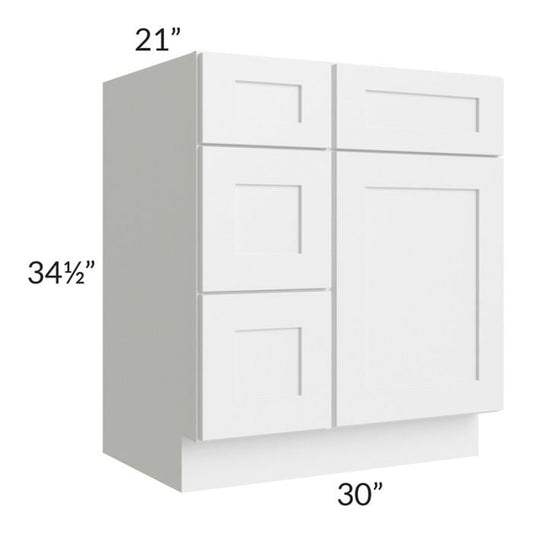 RTA Asheville White Shaker 30" Vanity Sink Base Cabinet (Drawers on Right)