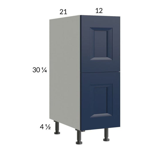 RTA Harbor Navy 12" 2-Drawer Vanity Base Cabinet with 1 Inner Drawer and 1 Finished End Panel