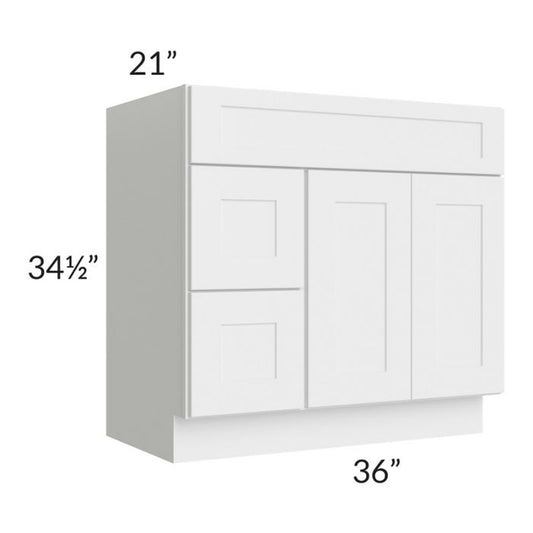 RTA Royal White Shaker 36" Vanity Sink Base Cabinet (Drawers on Right
