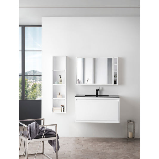 James Martin Vanities Mantova 35.4" Glossy White and Matte Black Base Single Vanity Cabinet