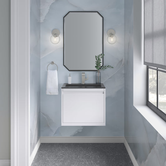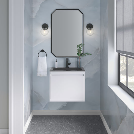 James Martin Vanities Mantova 23.6" Glossy White and Matte Black Base Single Vanity With Glossy White Composite Stone Top