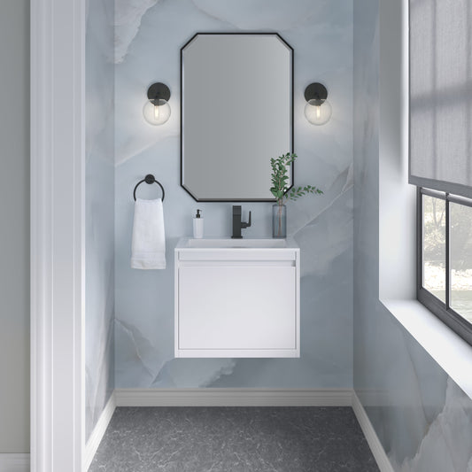 James Martin Vanities Mantova 23.6" Glossy White Single Vanity With Glossy White Composite Stone Top