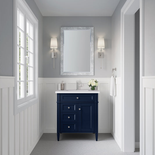 James Martin Vanities Brittany 30" Victory Blue Single Vanity With Single Hole 3 cm White Zeus Quartz Top & Backsplash