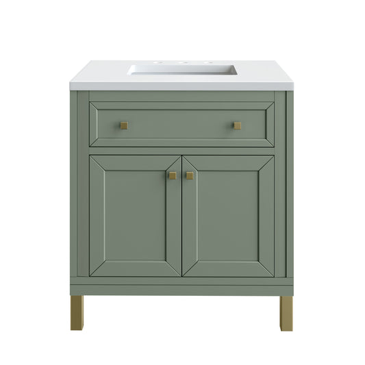 James Martin Vanities Chicago 30" Smokey Celadon Single Vanity With 3 cm White Zeus Top